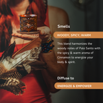 Known as “holy wood” in Spanish, Palo Santo is a tree associated with several medicinal and therapeutic properties - specifically known to induce positivity, grounding and protection. Cinnamon when combined results in a delightful blend of warmth, sweetness, and earthiness, creating an inviting and comforting atmosphere