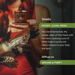 Known as “holy wood” in Spanish, Palo Santo is a tree associated with several medicinal and therapeutic properties - specifically known to induce positivity, grounding and protection. When blended with the delicate notes of White Sage, it amplifies its capacity to repel negative energies and promote a balanced, peaceful state of mind.