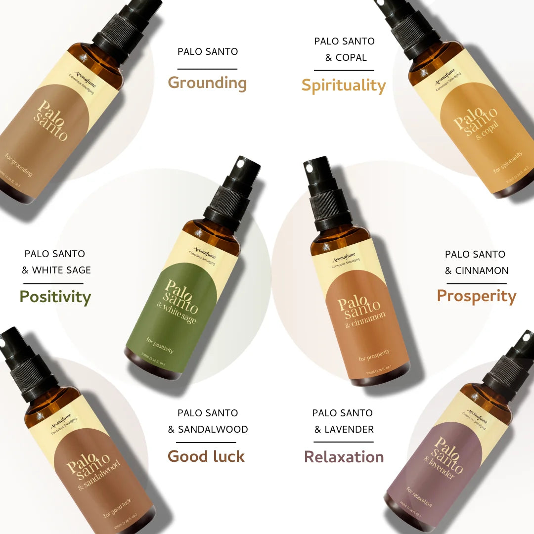Smokeless Smudging | Natural Home Fragrance & Aromatherapy Spray| Assortment scents of Palo Santo combined with White sage, copal, cinnamon, Sandalwood & Lavender | Natural Home Fragrance | Ethically Sourced Palo Santo extract