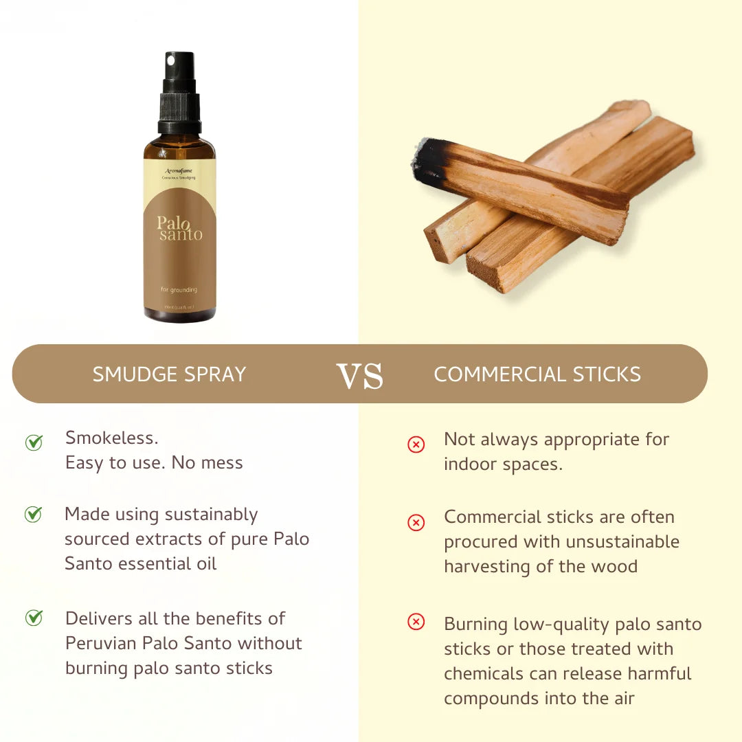 For generations, Palo Santo has been used to cleanse energy and purify spaces. Our smudge sprays honors this sacred ritual in a clean, smokeless form — no ash, no smoke, just pure aroma.