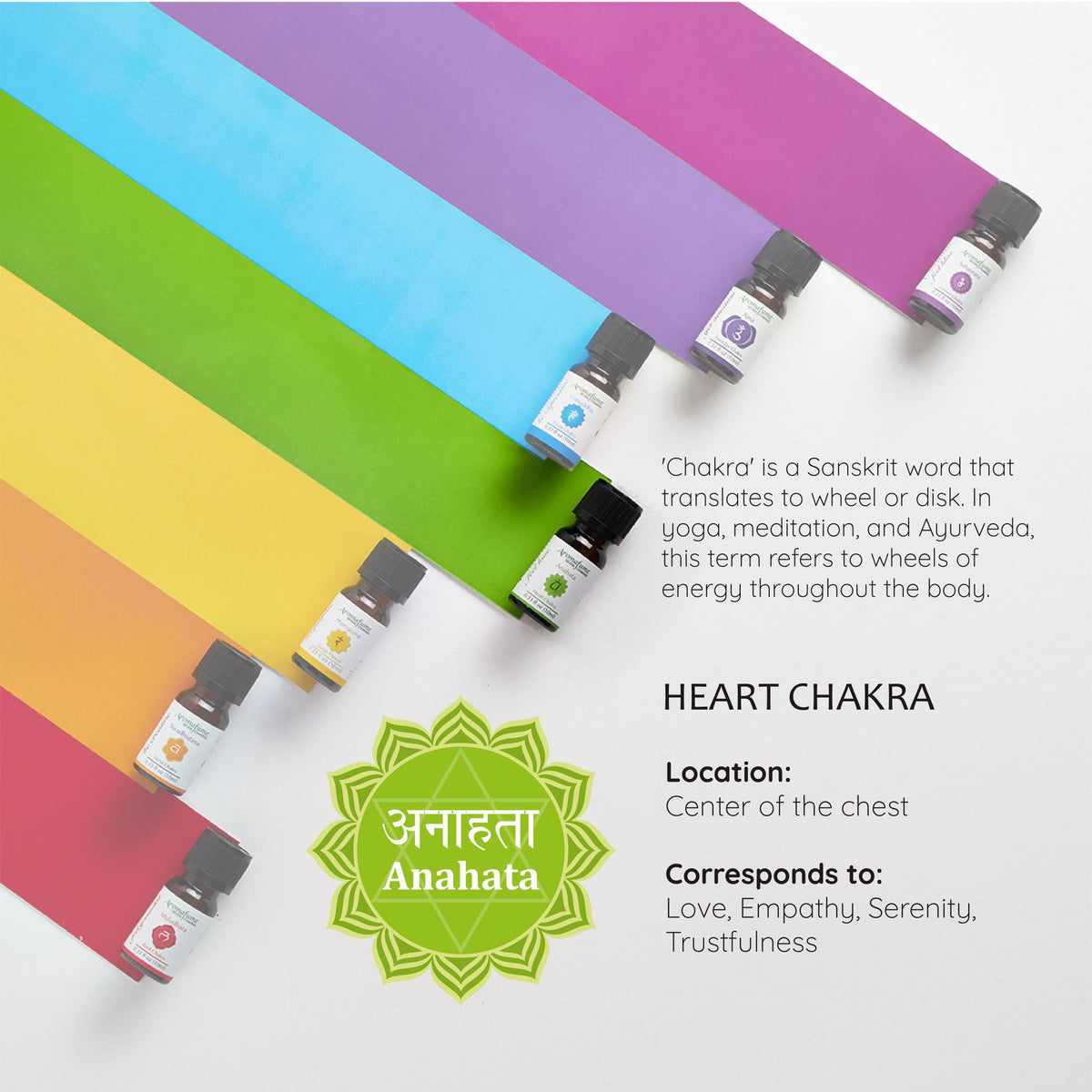 Inspired by ancient Ayurvedic rituals, our Chakra Essential Oils are designed to harmonize your seven chakras and restore energetic balance.