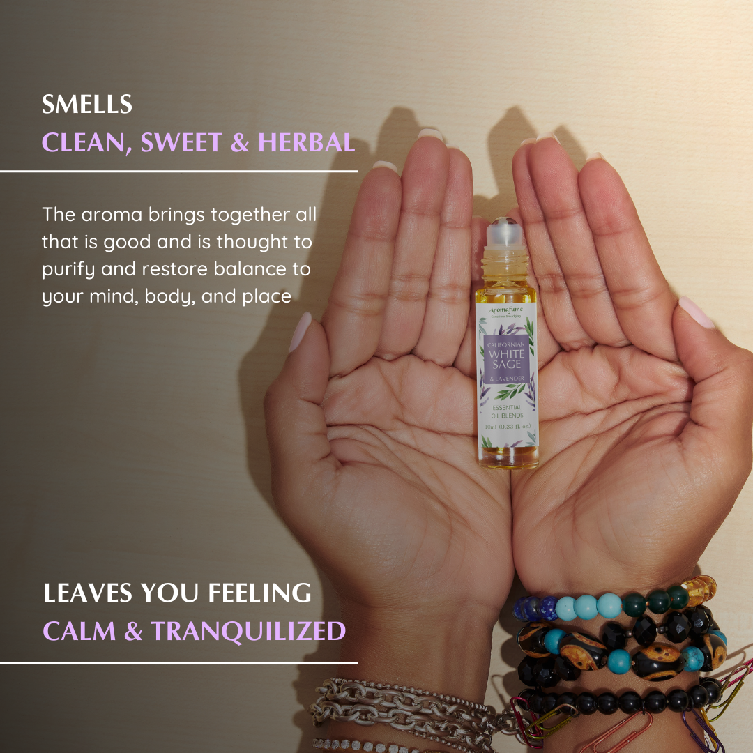 Aromatherapy Roll On | Made with Essential Oils | Sweet & herbal scent to induce purification | Apply during the day to feel relaxed | Ethically sourced White Sage