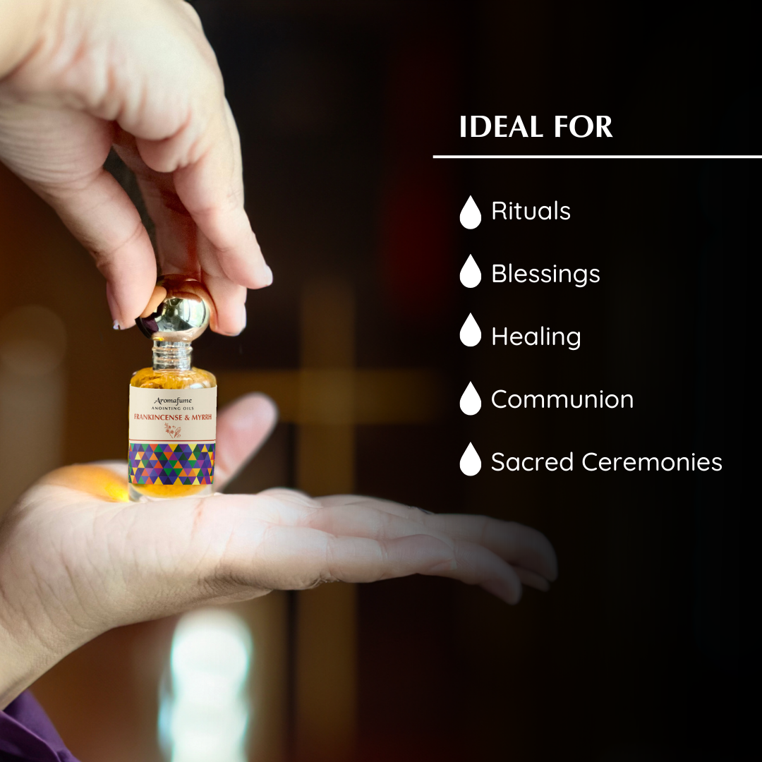 Experience one of the most sacred and ancient aromas with our Frankincense & Myrrh Anointing Oil. This holy anointing oil combines two of the most famous biblical oils into one powerful blend. The uplifting scent of Frankincense and the grounding aroma of Myrrh create a perfect balance for prayer, anointing, and spiritual rituals. Use this sacred oil blend to purify your space, deepen your meditation, and connect with a timeless tradition of devotion and faith.