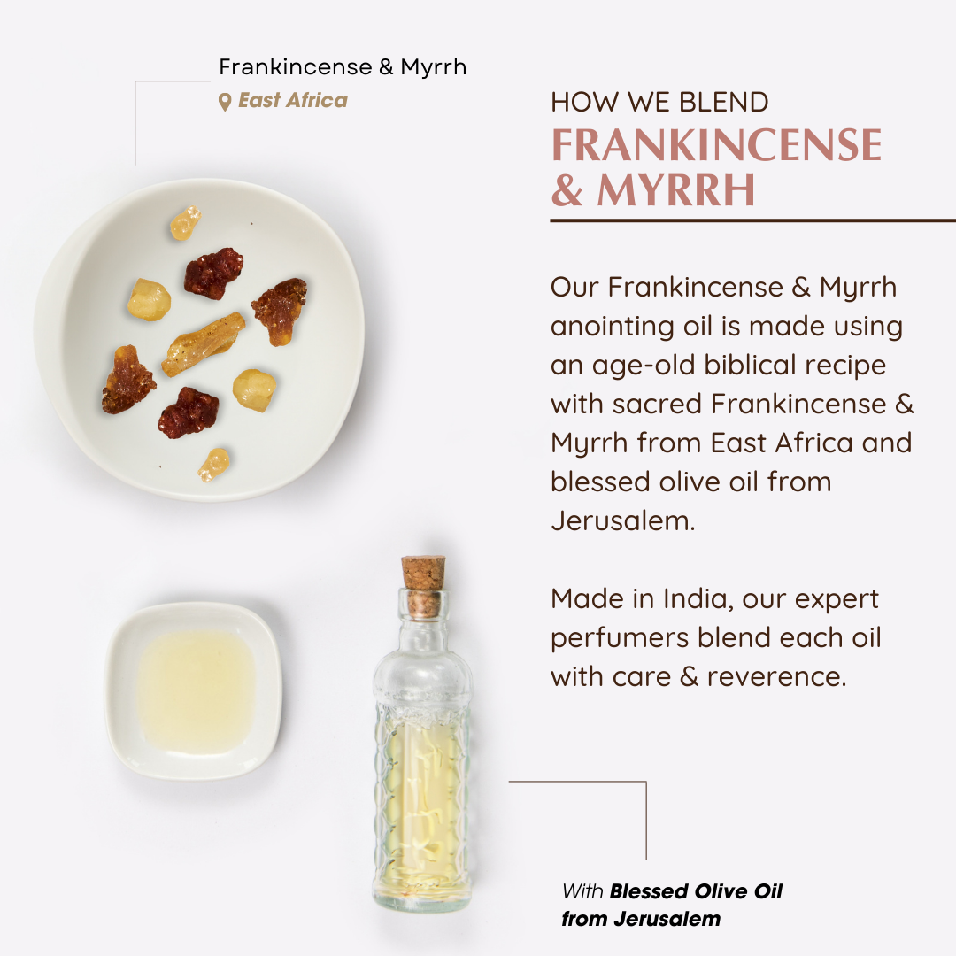 Holy oil for prayer and protection | Balsamic & Soft Woody scent | Made with Frankincense & Myrrh essential oil and Blessed Virgin Olive Oil from Jerusalem | Anoint yourself to welcome blessings