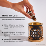 Diffuse a few drops to unwind, welcome guests, or create a spiritual, peaceful ambiance for meditation, yoga, and reflection.